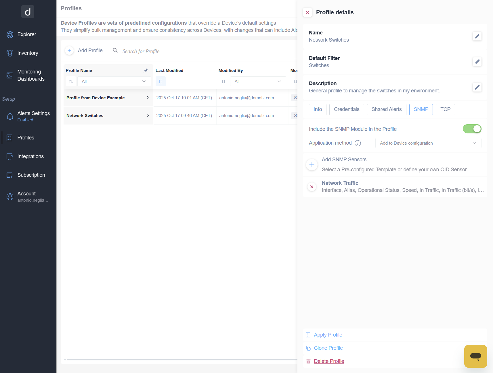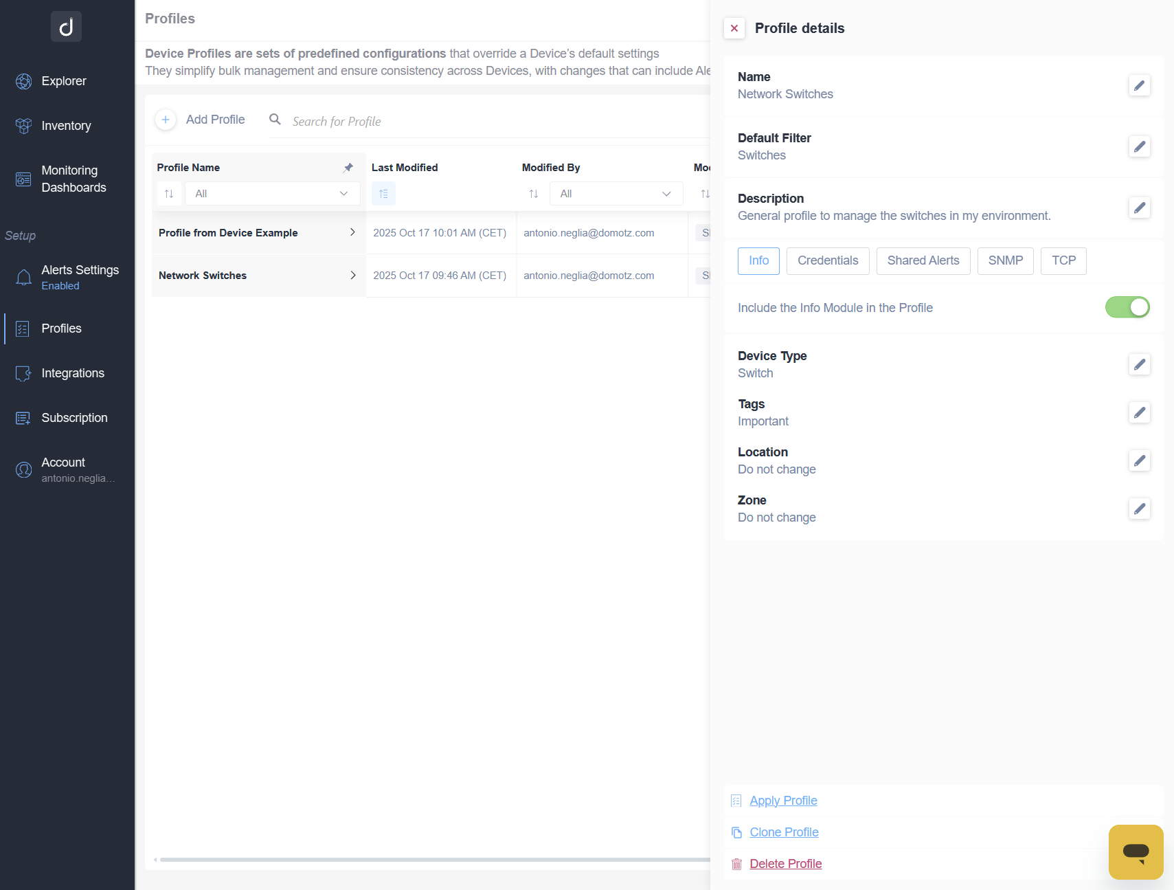 - Scaling the Monitoring of Devices – As the networks you oversee grow, managing device configurations manually becomes slow, inconsistent, and prone to errors. Device Profiles allows you to scale your device configuration to unlimited devices with little effort.